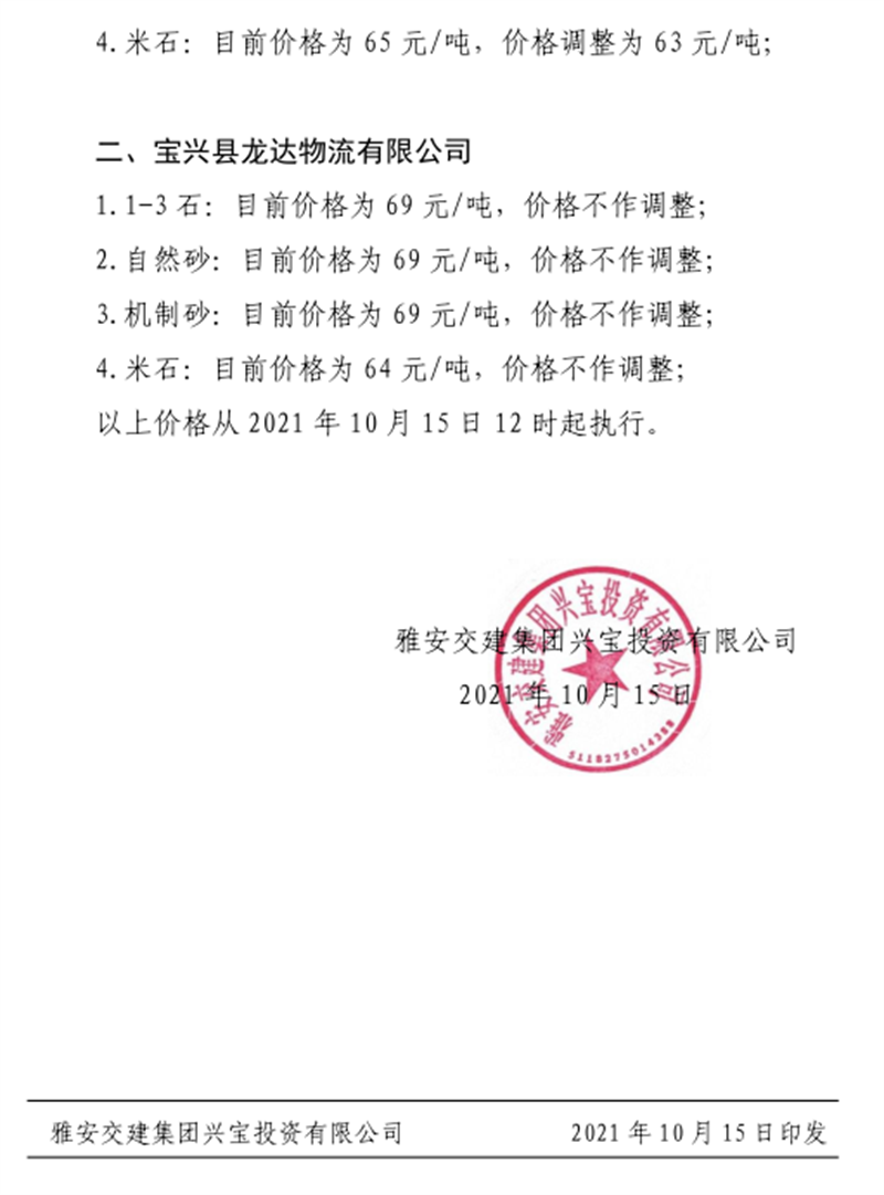 ÑŰ²½»½¨¼¯ˆF(tu¨¢n)ÅdŒš¹«Ë¾êP(gu¨¡n)ÓÚÕ{(di¨¤o)Õû³ÉÆ·ÁÏäNÊÛƒr(ji¨¤)¸ñµÄ֪ͨ£¨2021.10.9£©